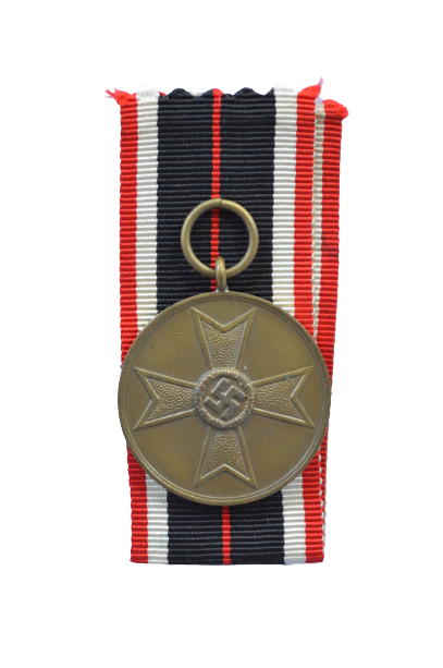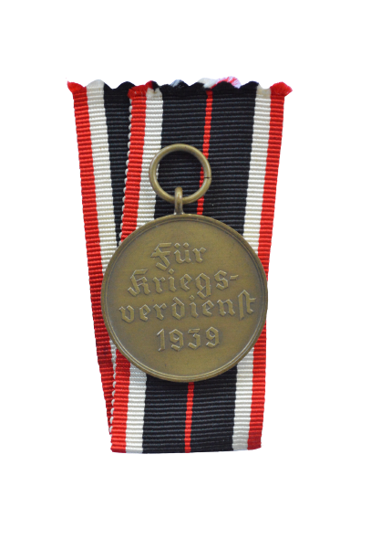 (Kriegsverdienstmedaille). A round bronze medal; the obverse depciting the outline of a War Merit Cross First Class; the reverse inscribed “Für Kriegsverdienst” (German - For War Merit), and dated “1939”; on a loop for suspension - with original ribbon.