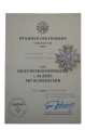 A War Merit Cross First Class with Swords and Paper Award. A War Merit Cross marked 65 maker Klein & Quenzer, Idar-Oberstein, in case of issue, very nice condition. Paper Award on the honored Oberwachtmeister Otto Schneider 13. (I.G.) / Gr.Rgt.754 signed by Generalleutnant u.Kdr.334.Inf.Div. Böhlke, Otto Hellmuth, who was awarded the Ritterkreuz (September 20, 1942) Oak leaves (January 25, 1945).