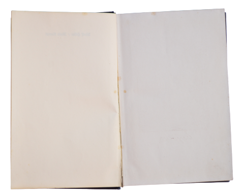 (Mein Kampf). A1934 edition of Mein Kampf, constructed of a card stock binding with a blue canvas exterior liner, the front cover bearing a gilt embossed NSDAP-style German national eagle clutching a wreathed swastika, the spine bearing a name and title in gilt script, a black and white portrait of AH protected by a wax paper insert, featuring both volumes of Mein Kampf in Fraktur script over 781 paginated pages, closing with advertisements and price lists for other NSDAP publications and newspapers, measuring 130 mm (w) x 194 mm (h), with only slight signs of material fatigue evident, very nice condition.
