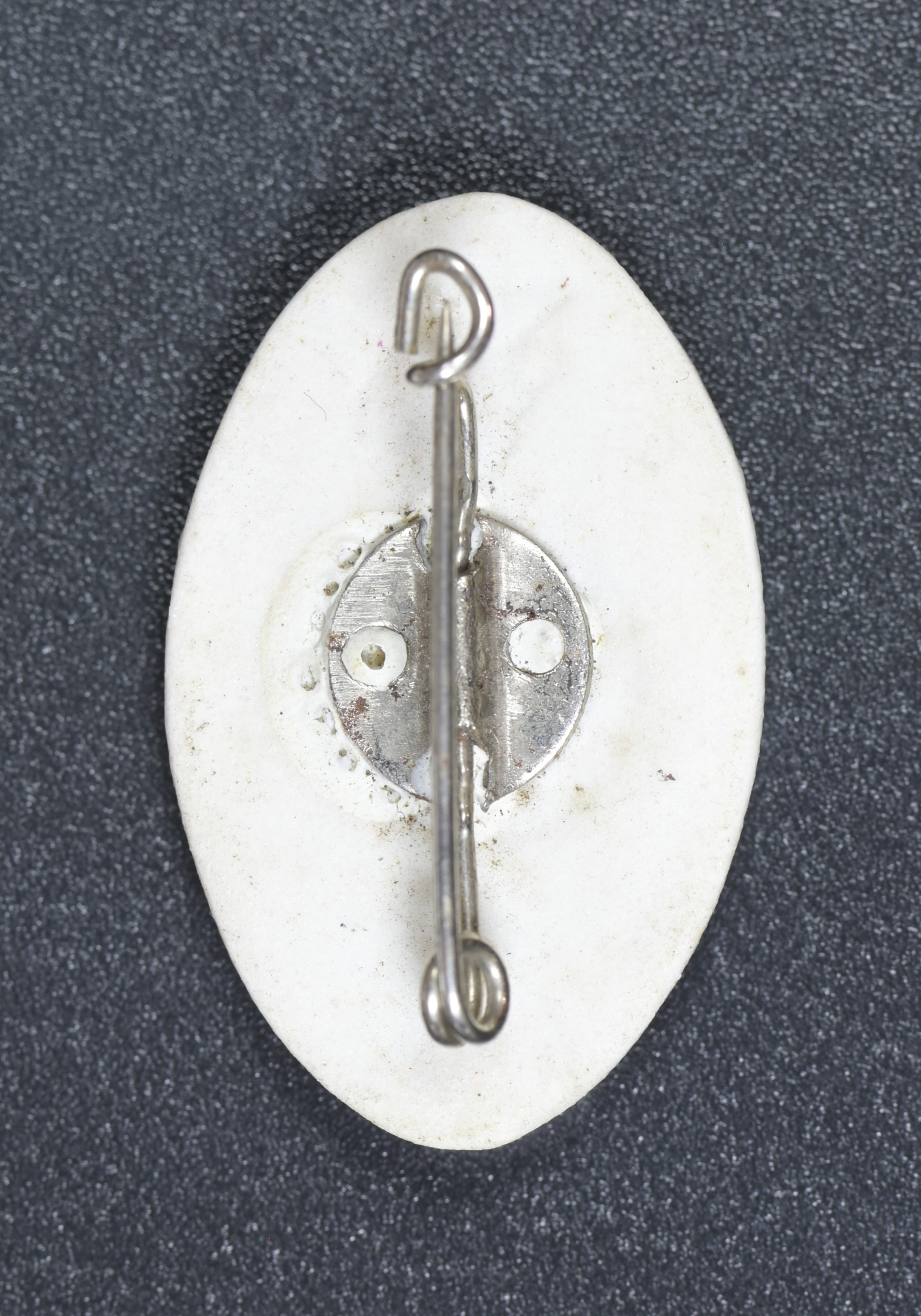 A 1934 HJ Sports Festival commemorative badge, constructed of glazed white porcelain, vertical pinback, unmarked, measuring 19 mm (w) x 30 mm (h), in extremely fine condition.
