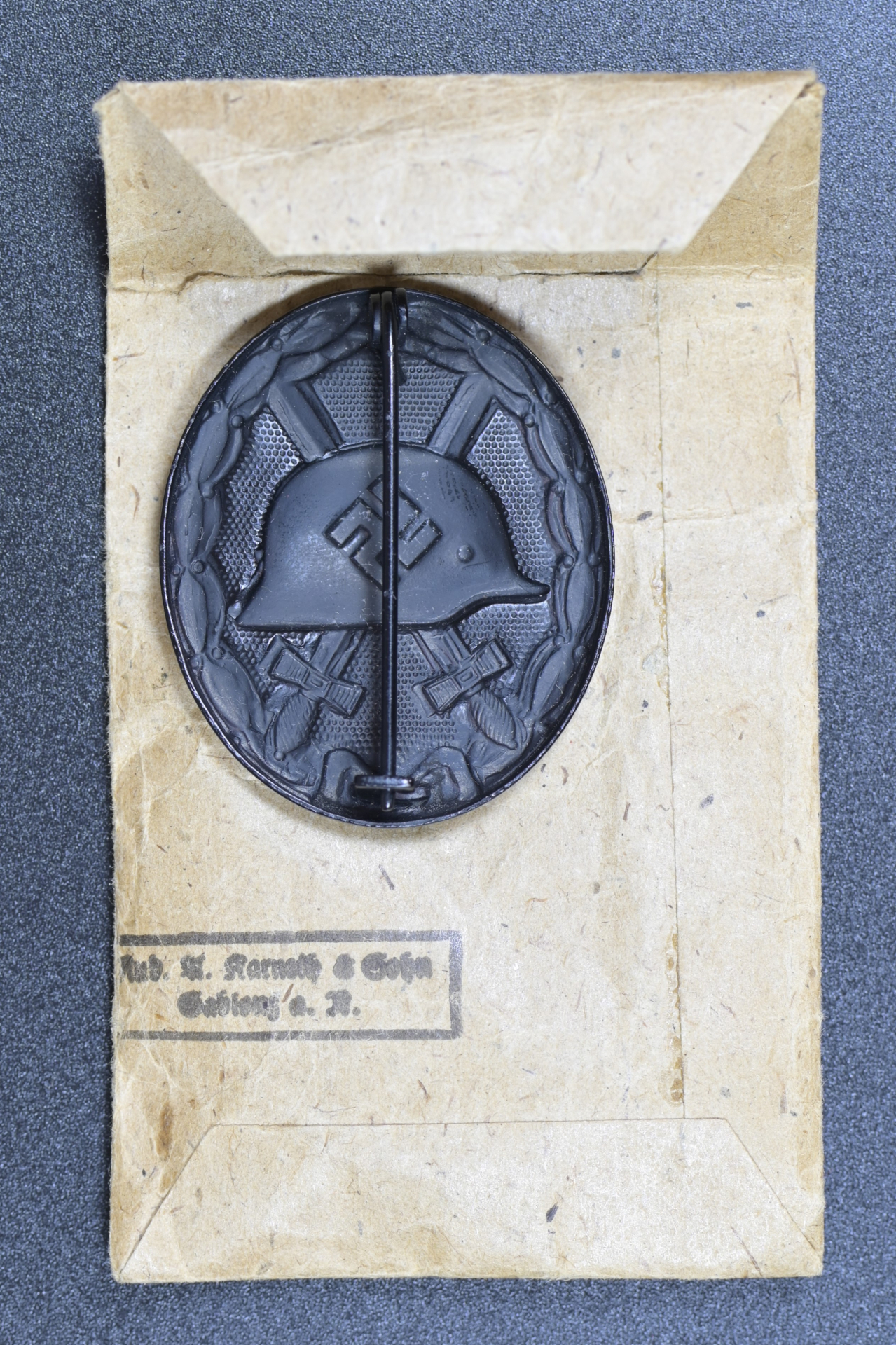 WOUND BADGE BLACK GRADE UNMARKED, MAGNETIC IN ENVELOPE MARKED - Rudolf A. Karneth & Sohne, Gablonz a.N., very nice condition.
